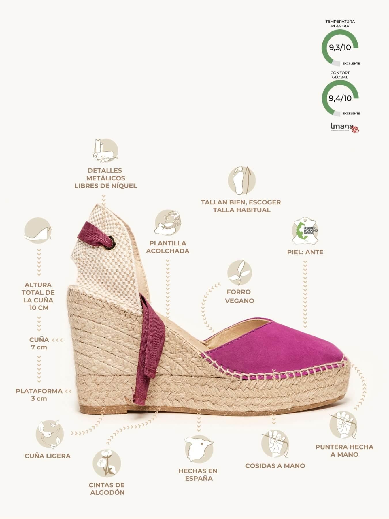 Alpargata Cuña Alta: 10 cm totales (3 de plataforma + 7 de cuña).