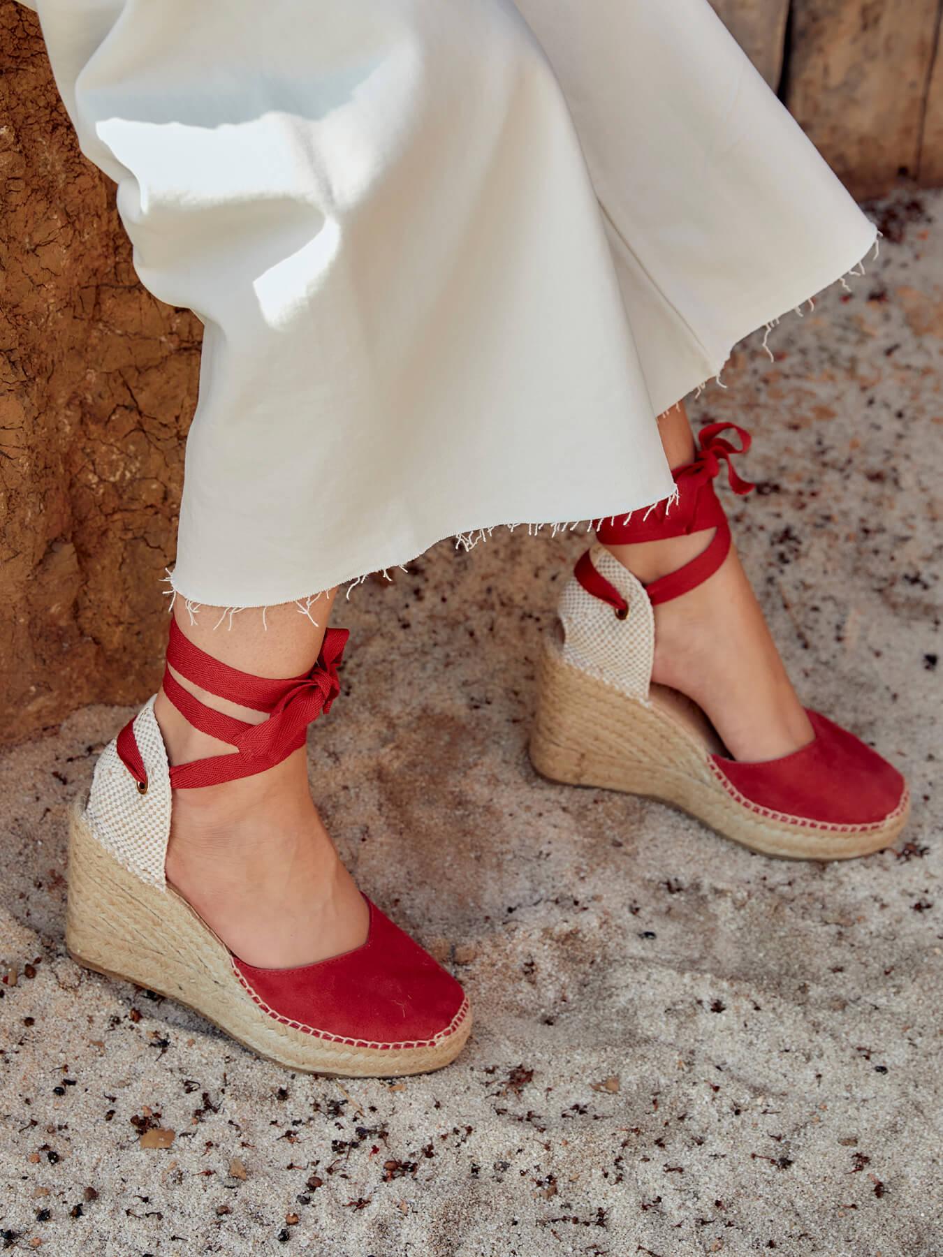 La alpargata de cuña alta Romero, es nuestro modelo más icónico. Una alpargata valenciana de escote corazón con cintas que podrás llevar con tus looks especiales y también con los del día a día. Podrás darle un toque especial porque las cintas se pueden cambiar.