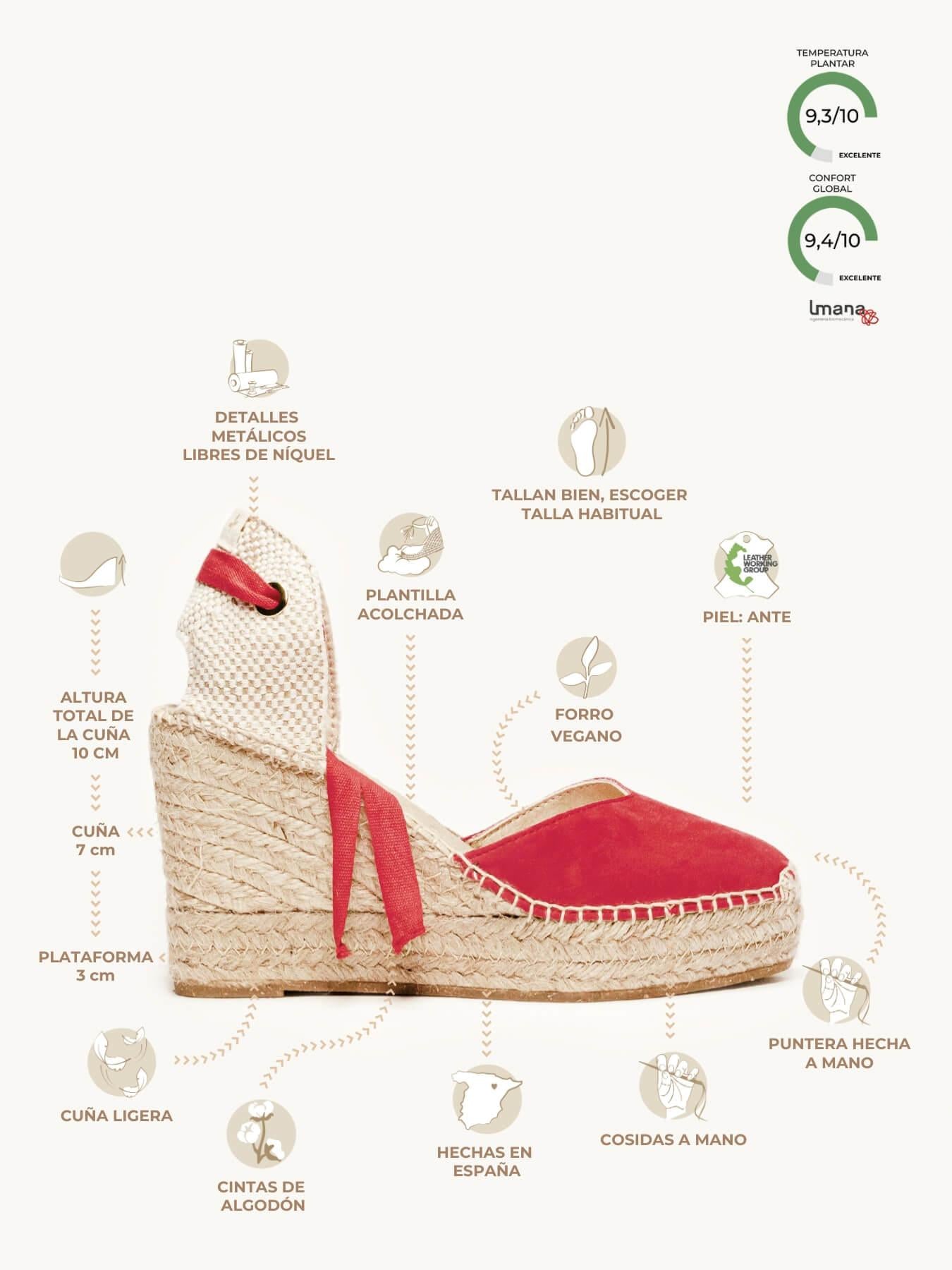 Alpargata Cuña Alta: 10 cm totales (3 de plataforma + 7 de cuña).