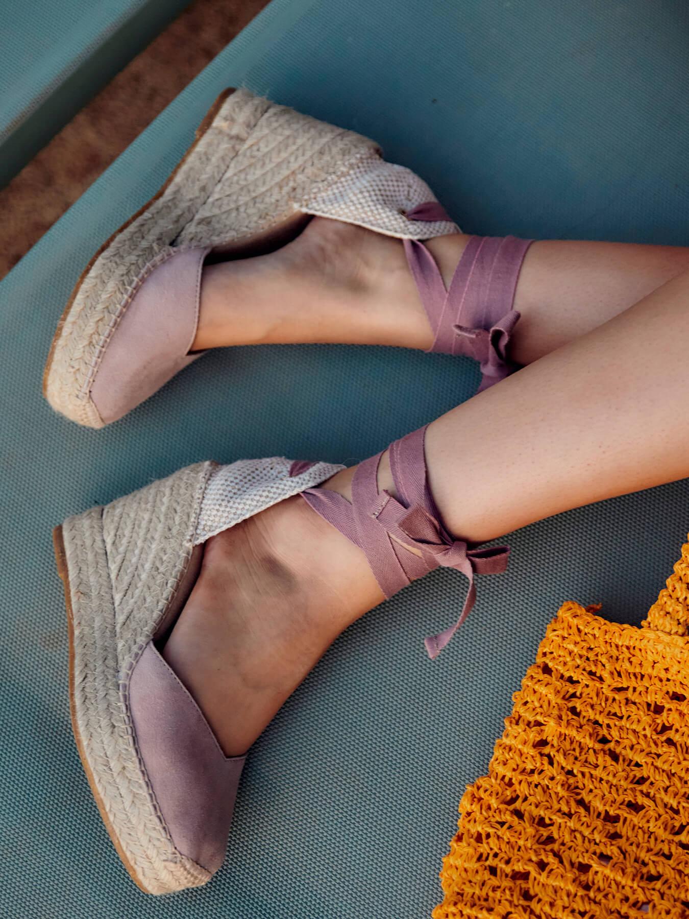 La alpargata de cuña alta Romero, es nuestro modelo más icónico. Una alpargata valenciana de escote corazón con cintas que podrás llevar con tus looks especiales y también con los del día a día. Podrás darle un toque especial porque las cintas se pueden cambiar.