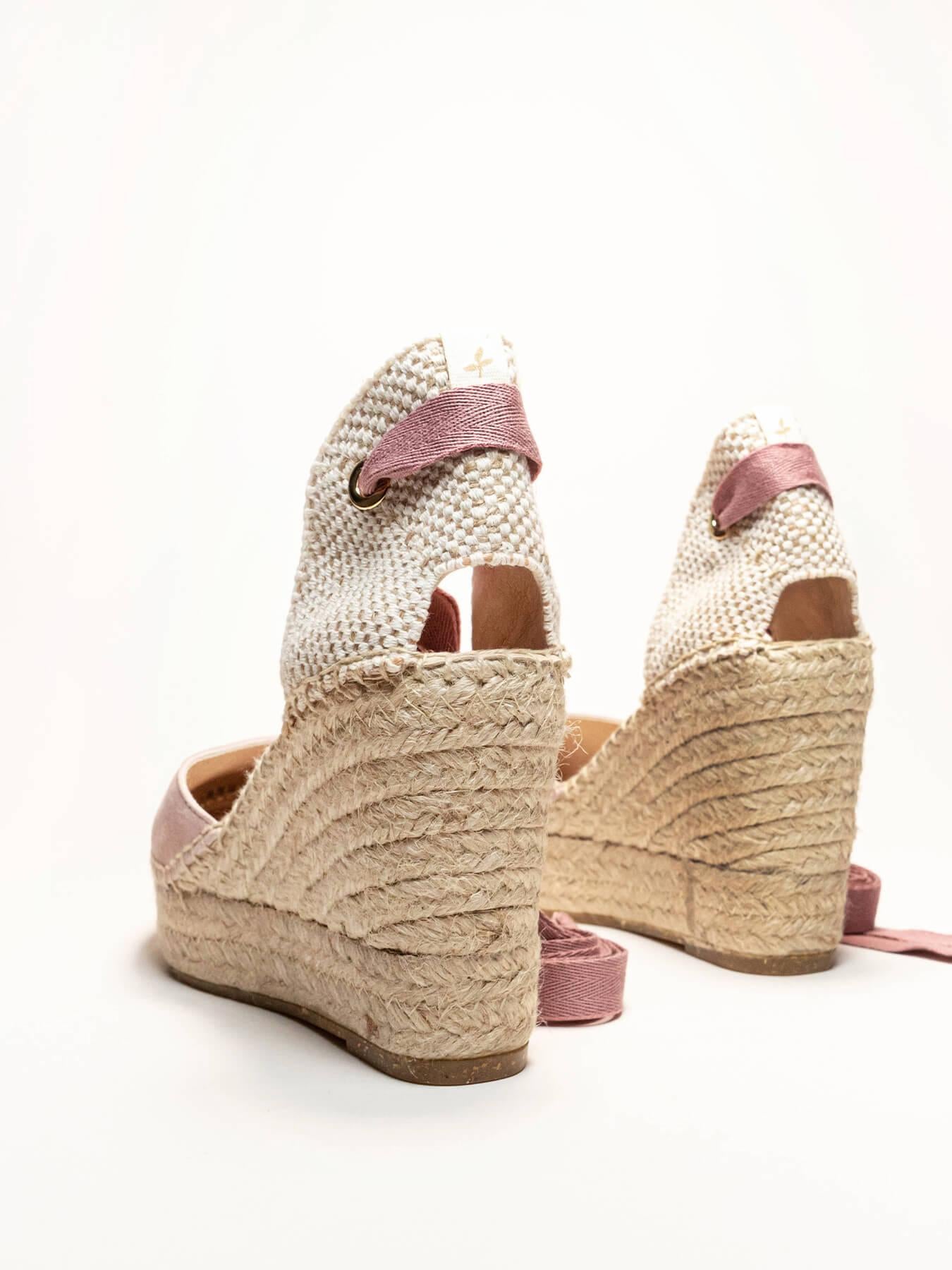 - Cuña de trenza de Yute natural con suela de goma reciclada mezclada con fibras naturales.