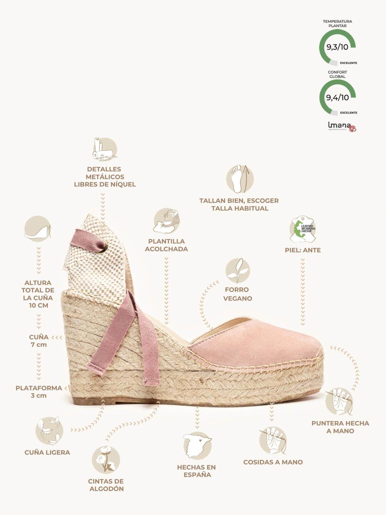 Alpargata Cuña Alta: 10 cm totales (3 de plataforma + 7 de cuña).