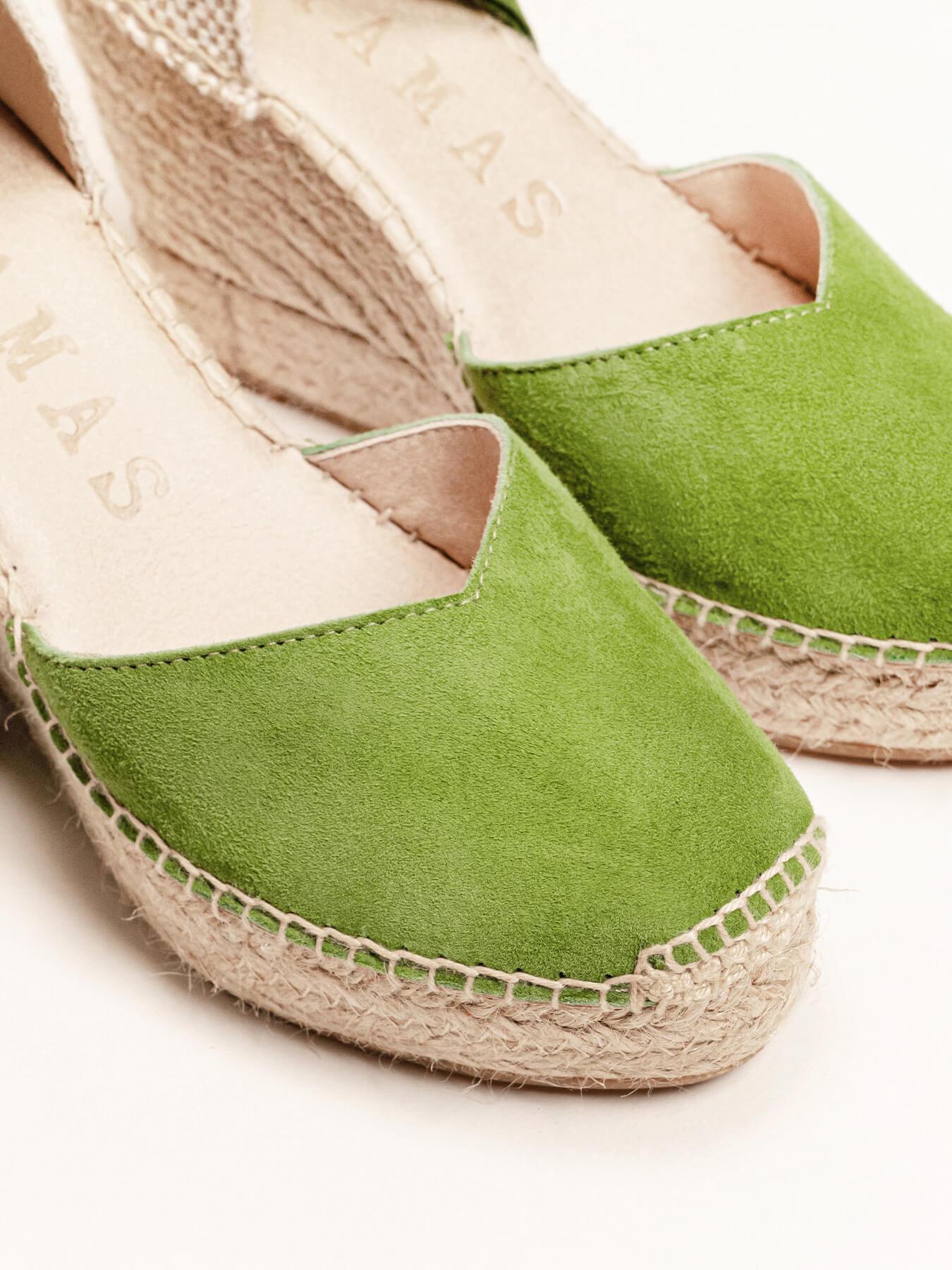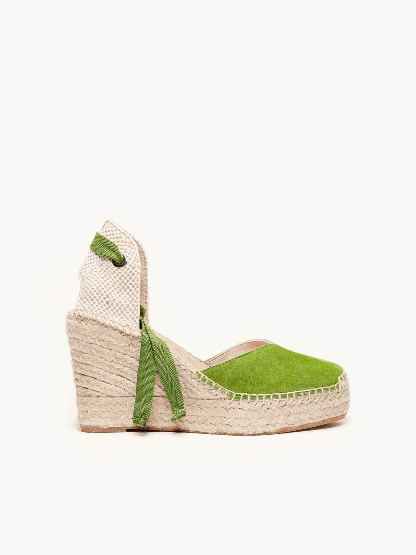 La alpargata de cuña alta Romero, es nuestro modelo más icónico. Una alpargata valenciana de escote corazón con cintas que podrás llevar con tus looks especiales y también con los del día a día. Podrás darle un toque especial porque las cintas se pueden cambiar.