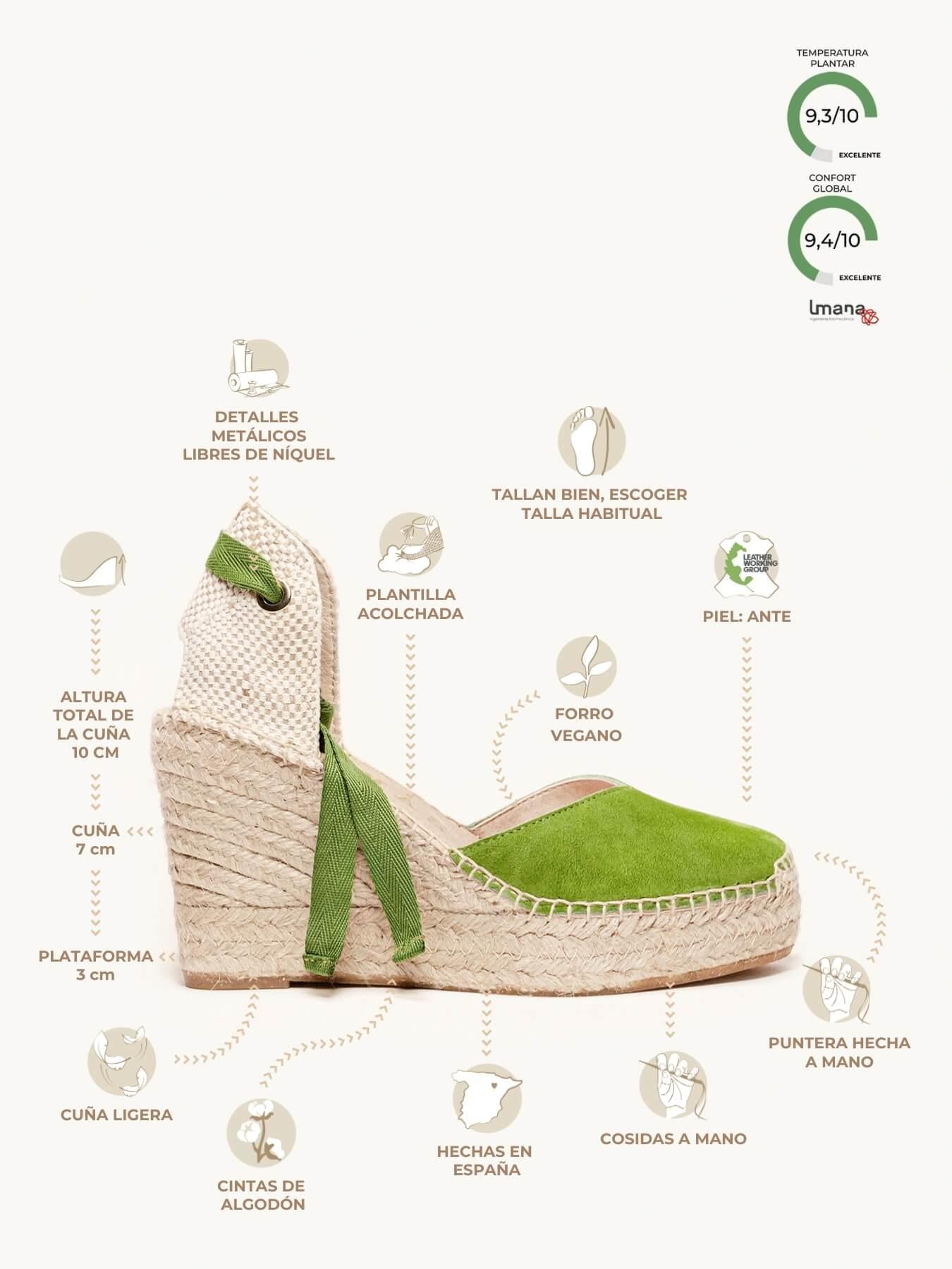 Alpargata Cuña Alta: 10 cm totales (3 de plataforma + 7 de cuña).