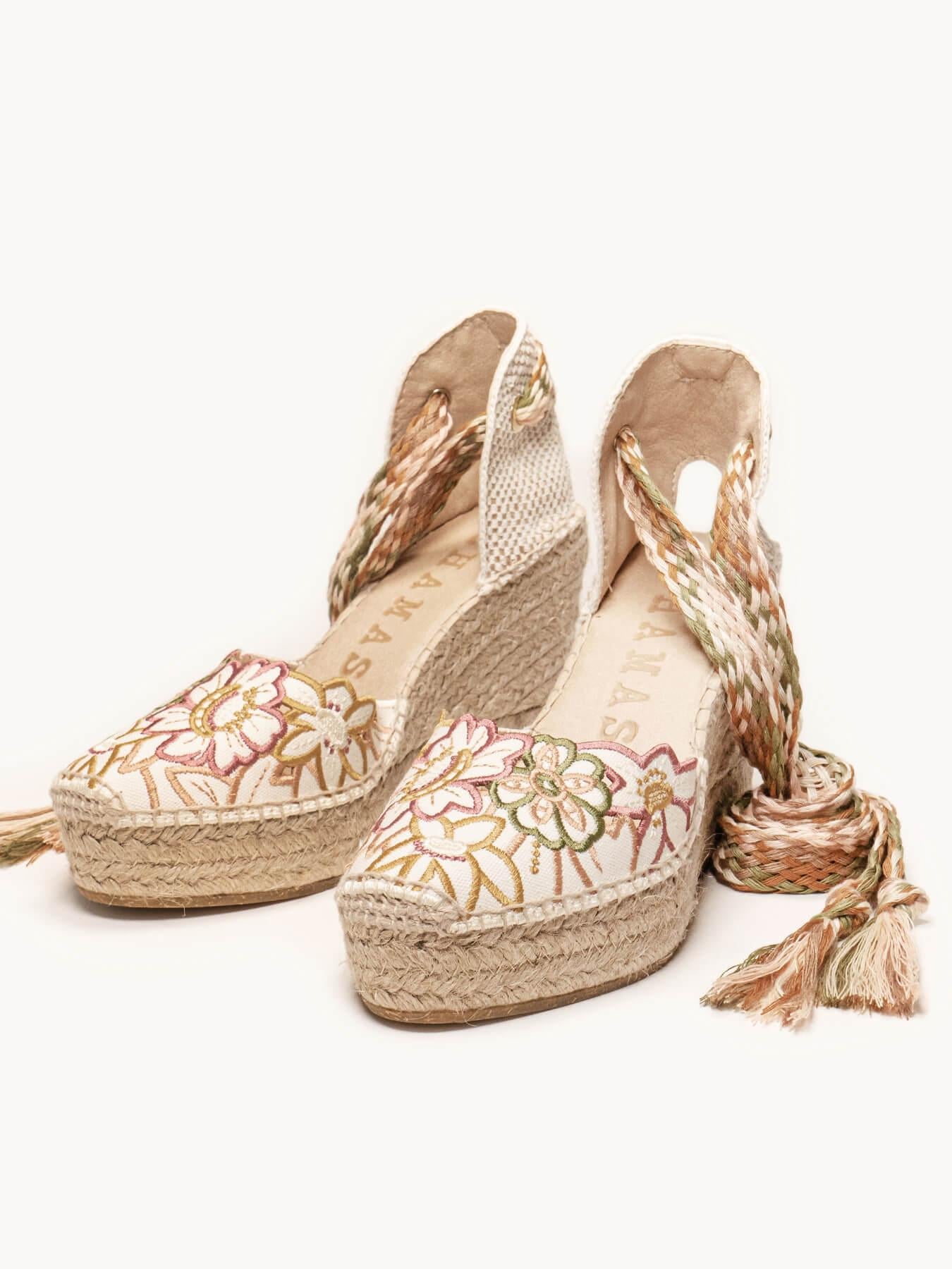 La alpargata de cuña alta Romero, es nuestro modelo más icónico. Una alpargata valenciana de escote corazón con cintas que podrás llevar con tus looks especiales y también con los del día a día. Podrás darle un toque especial porque las cintas se pueden cambiar.