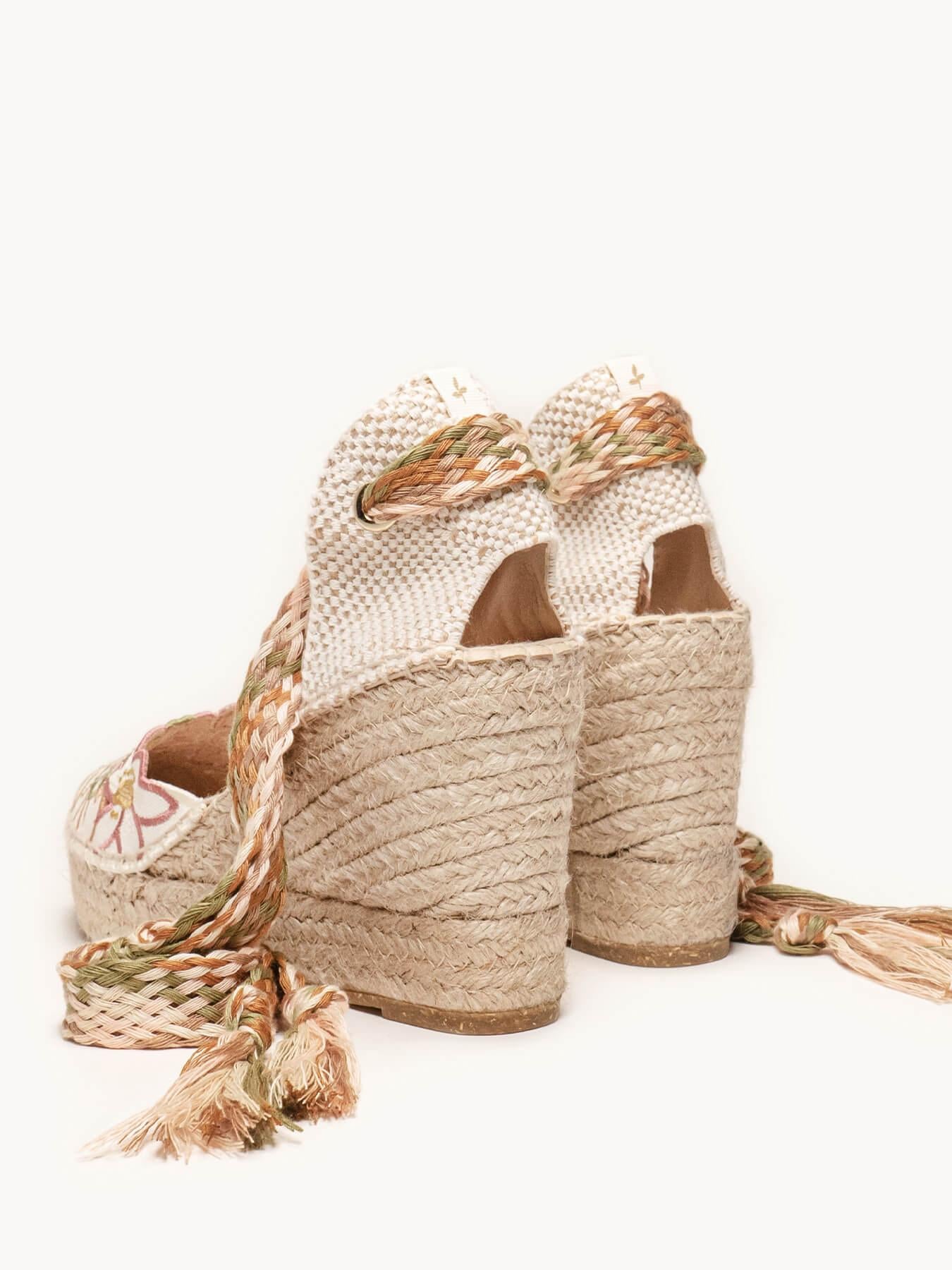 - Cuña de trenza de Yute natural con suela de goma reciclada mezclada con fibras naturales.