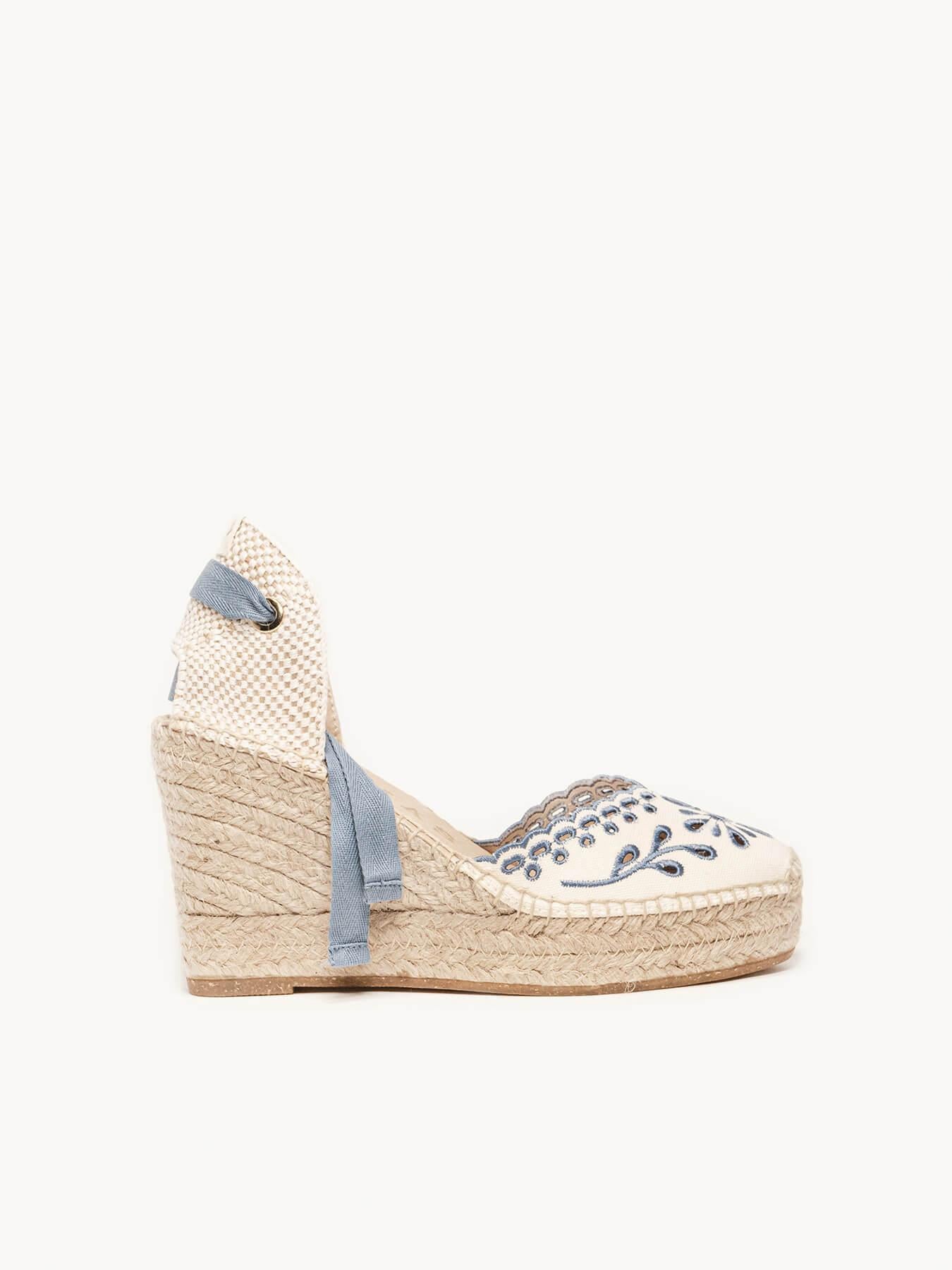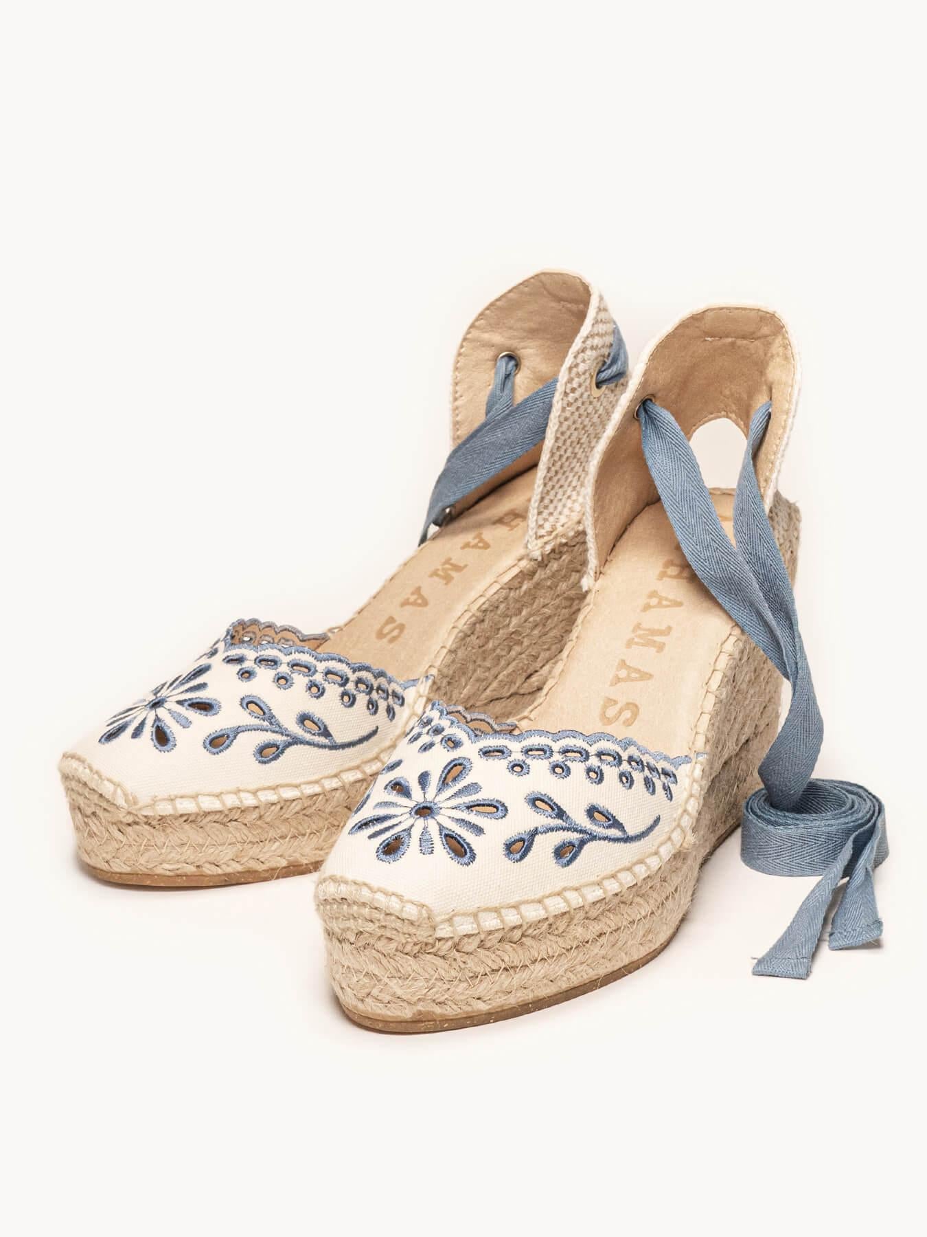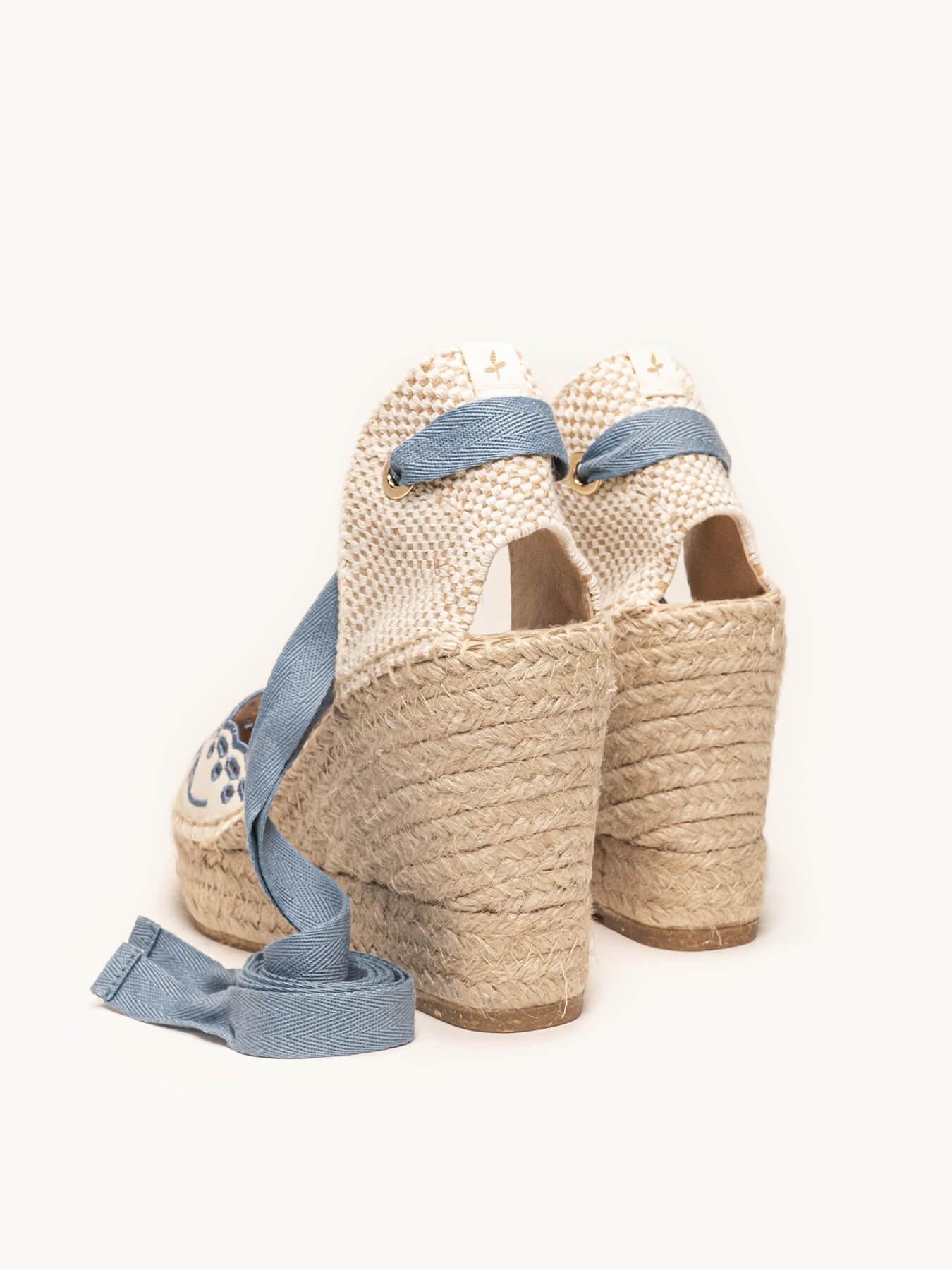 Romero Cuña Alta Lona Bordada Azul Jeans