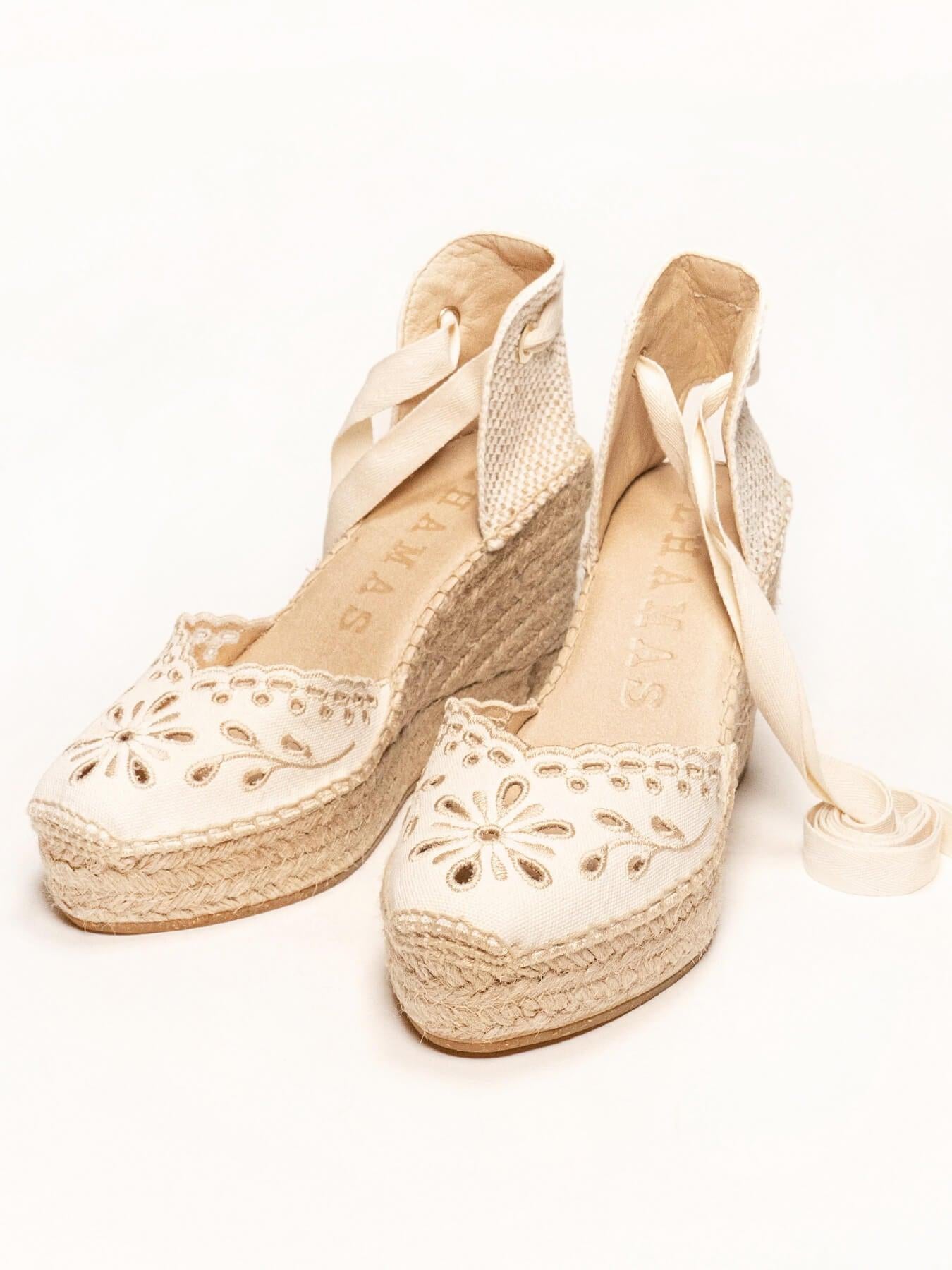 La alpargata de cuña alta Romero, es nuestro modelo más icónico. Una alpargata valenciana de escote corazón con cintas que podrás llevar con tus looks especiales y también con los del día a día. Podrás darle un toque especial porque las cintas se pueden cambiar.
