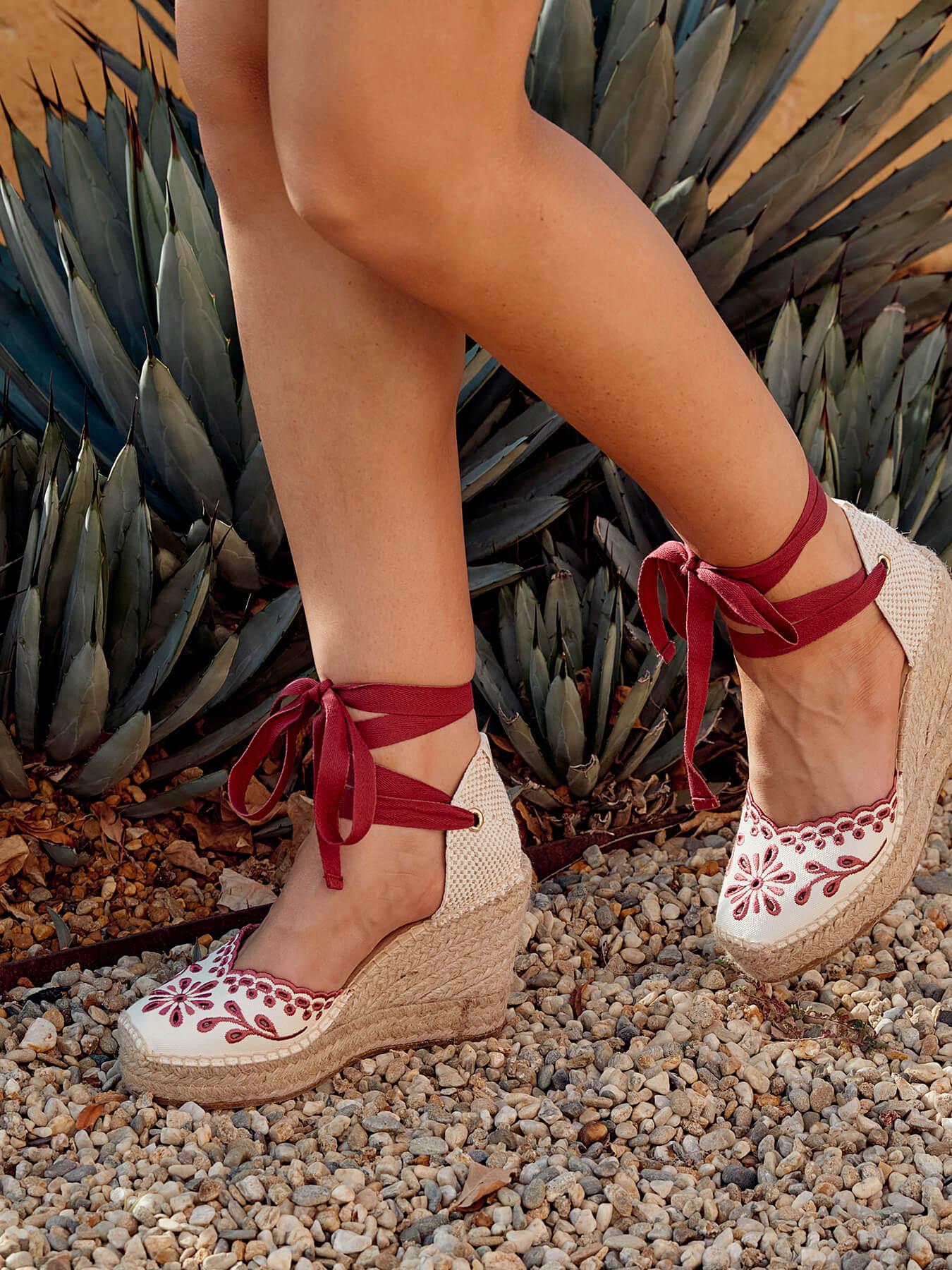 La alpargata de cuña alta Romero es nuestro modelo más icónico. Una alpargata valenciana de escote corazón con cintas que podrás llevar con tus looks especiales y también con los del día a día. Podrás darle un toque especial porque las cintas se pueden cambiar.