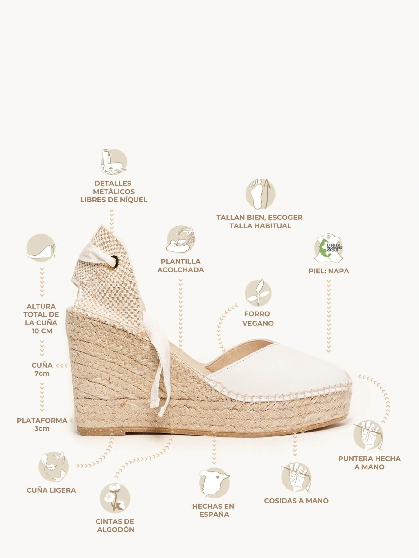 Alpargata Cuña Alta: 10 cm totales (3 de plataforma + 7 de cuña).