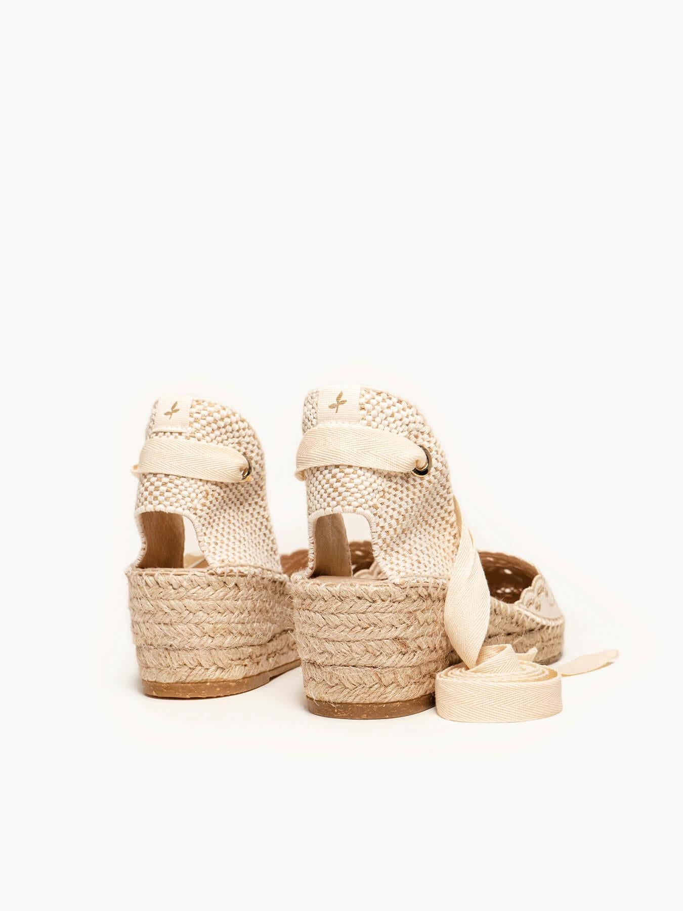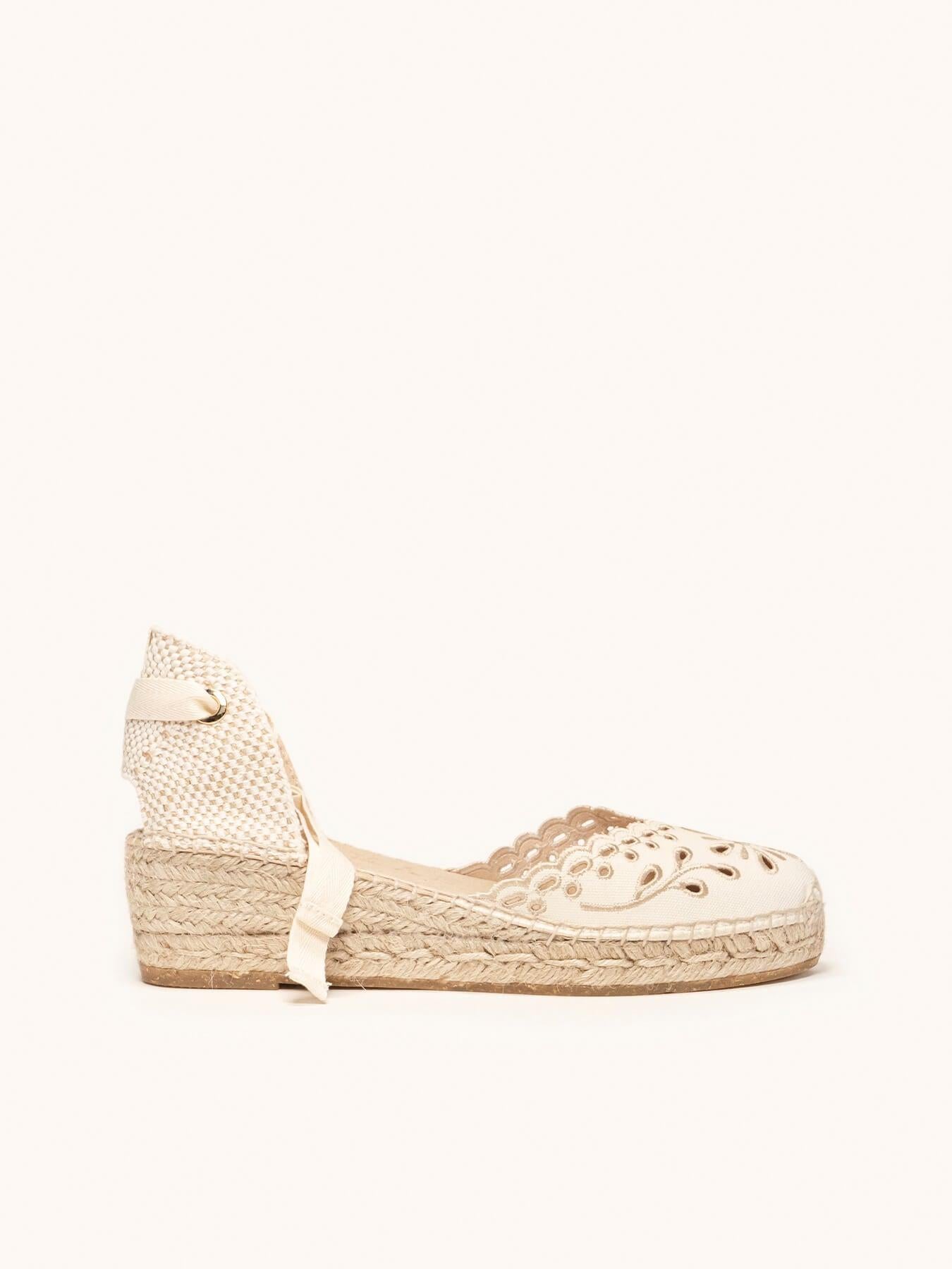 Romero Cuña Baja Lona Bordada Crudo