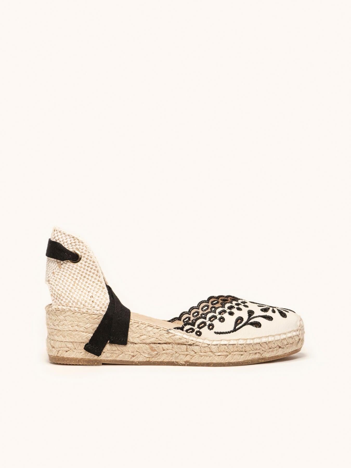 Romero Cuña Baja Lona Bordada Negro