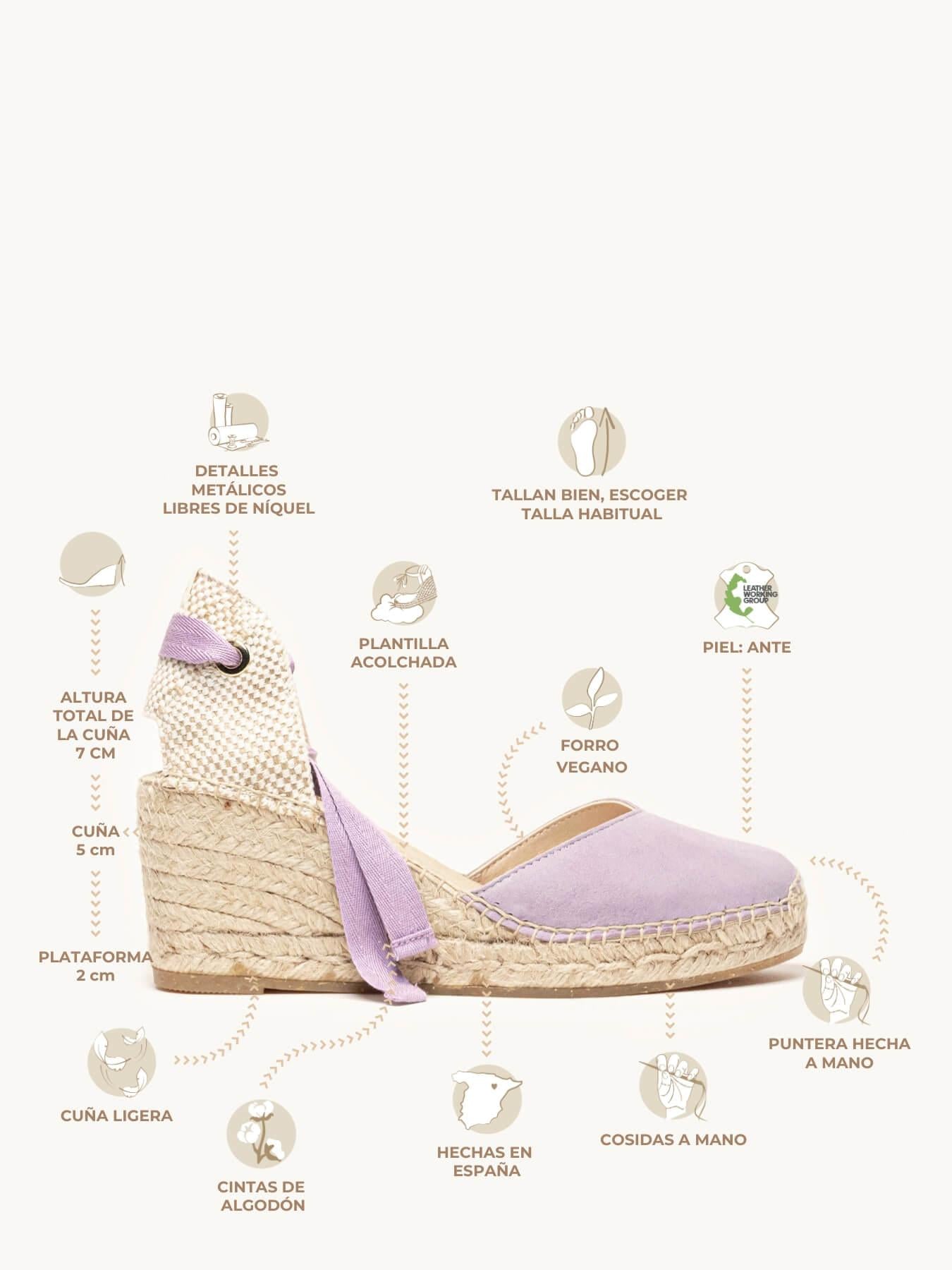 - El ante de la alpargata Romero está certificado por el Leather Working Group (una organización que promueve prácticas ambientales sostenibles)