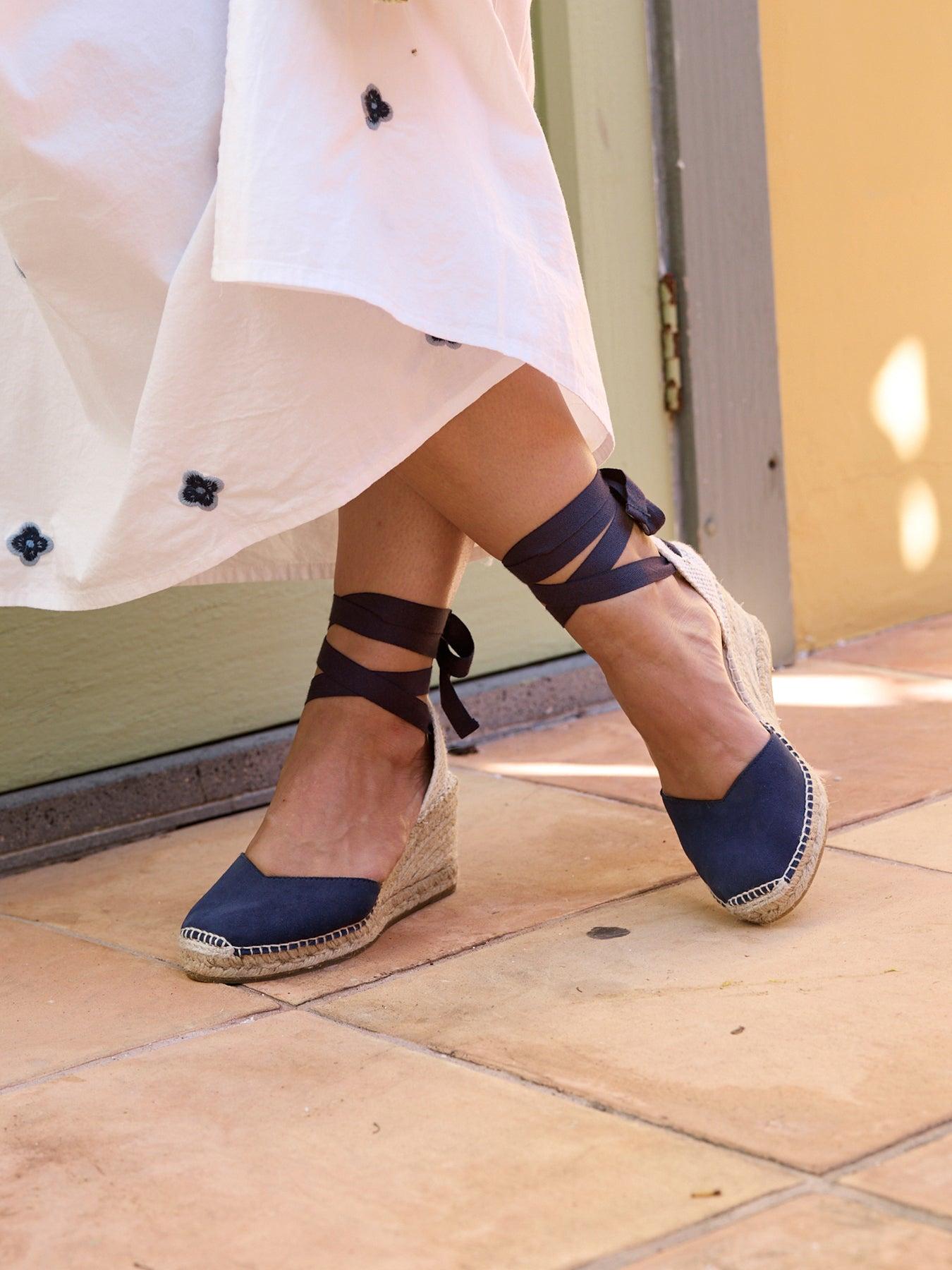 La alpargata de cuña media Romero, es nuestro modelo más icónico. Una alpargata valenciana de escote corazón con cintas que podrás llevar con tus looks especiales y también con los del día a día. Podrás darle un toque especial porque las cintas se pueden cambiar.