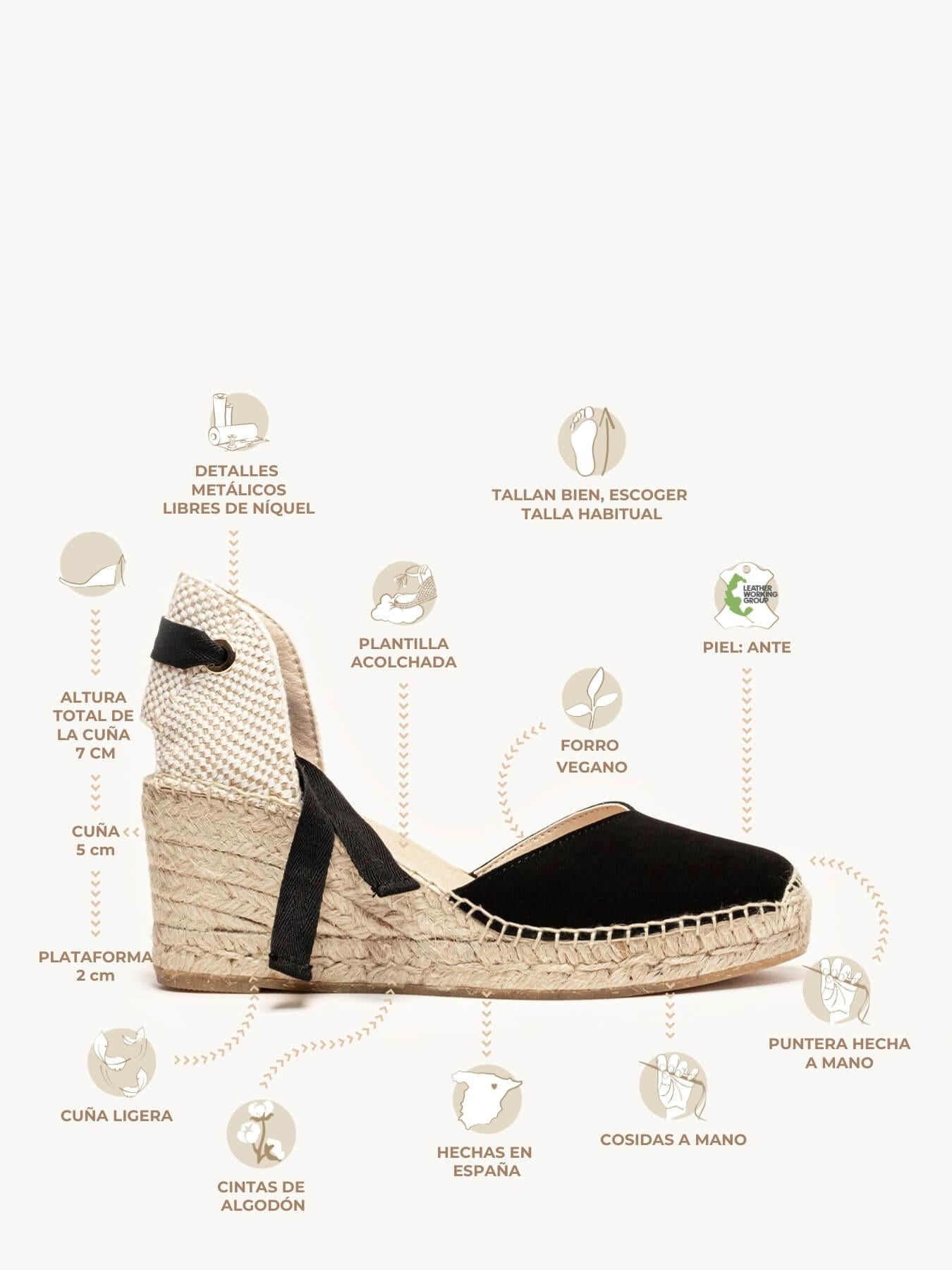 Alpargata Cuña Media: 7 cm totales (2 de plataforma + 5 de cuña).