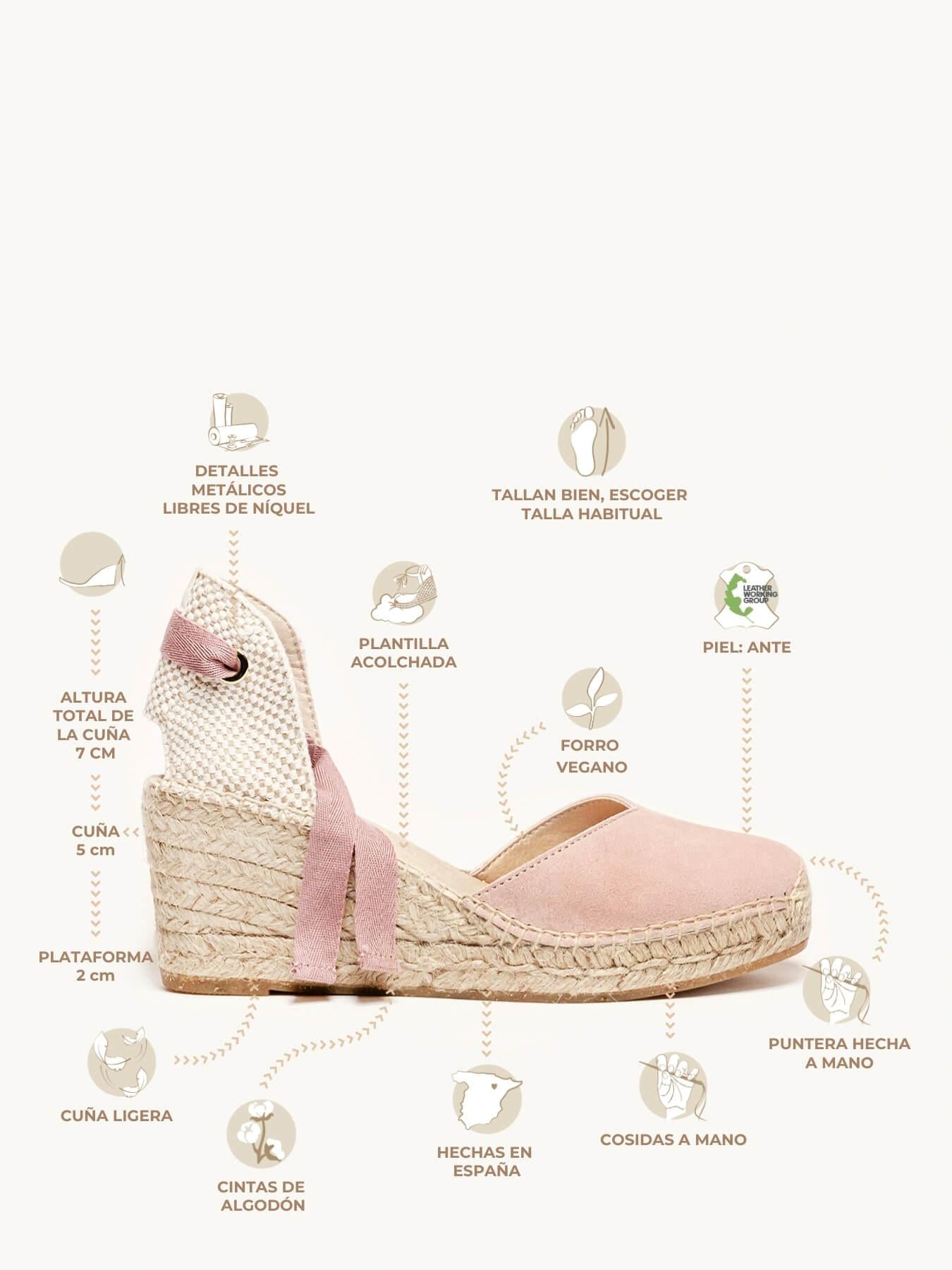 Alpargata Cuña Media: 7 cm totales (2 de plataforma + 5 de cuña).