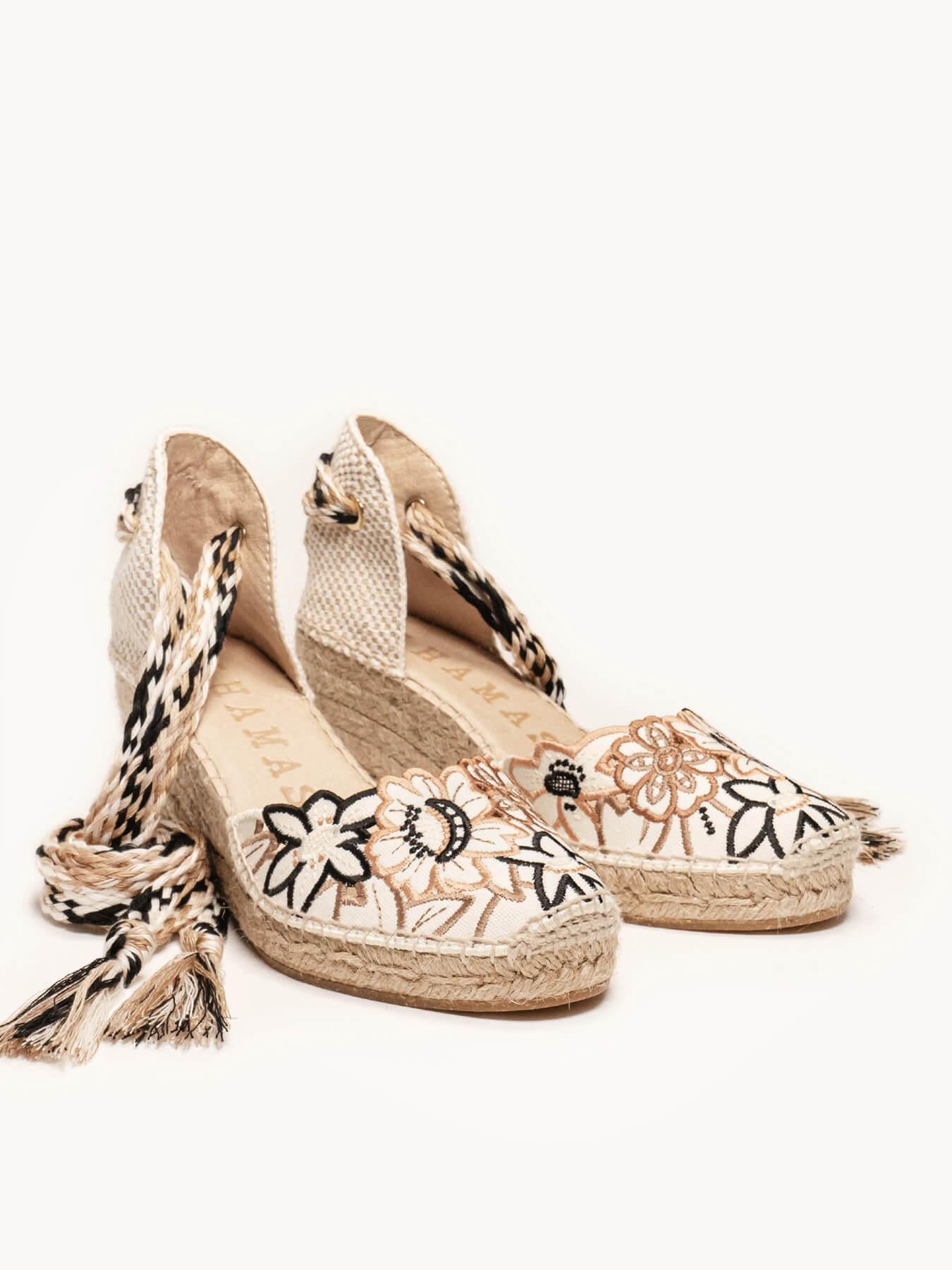 La alpargata de cuña media Romero es nuestro modelo más icónico. Una alpargata valenciana de escote corazón con cintas que podrás llevar con tus looks especiales y también con los del día a día. Podrás darle un toque especial porque las cintas se pueden cambiar.