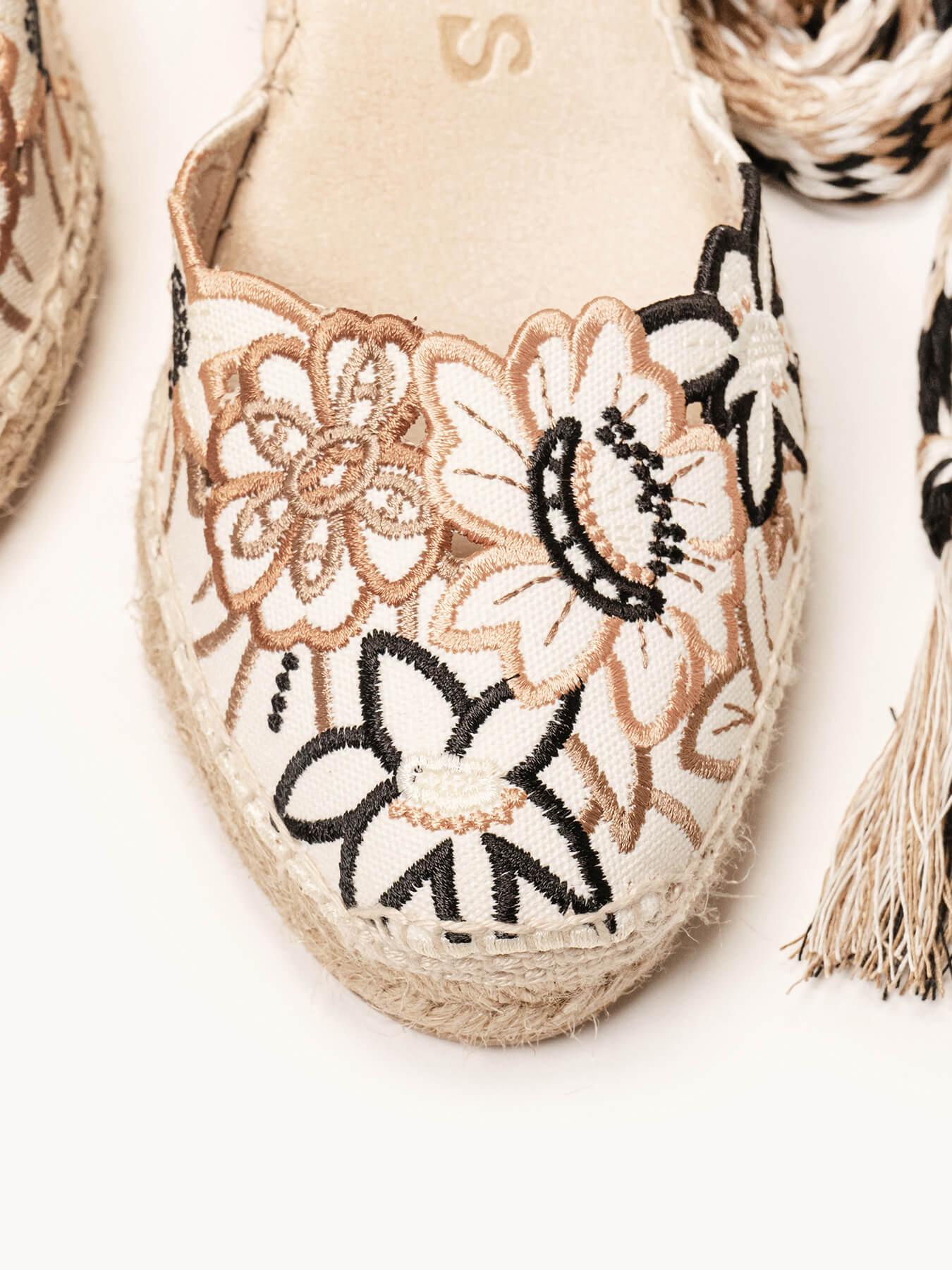- El tejido bordado de la alpargata Romero es de algodón orgánico teñido con tintes 100% naturales.