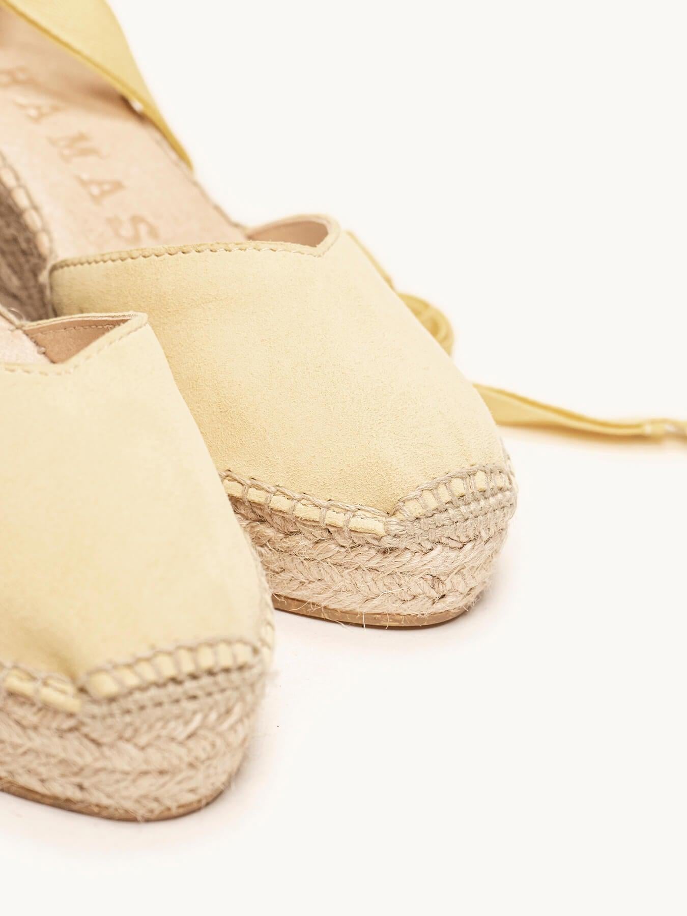La alpargata de cuña media plataforma Romero, es nuestro modelo más icónico. Una alpargata valenciana de escote corazón con cintas que podrás llevar con tus looks especiales y también con los del día a día. Podrás darle un toque especial porque las cintas se pueden cambiar.