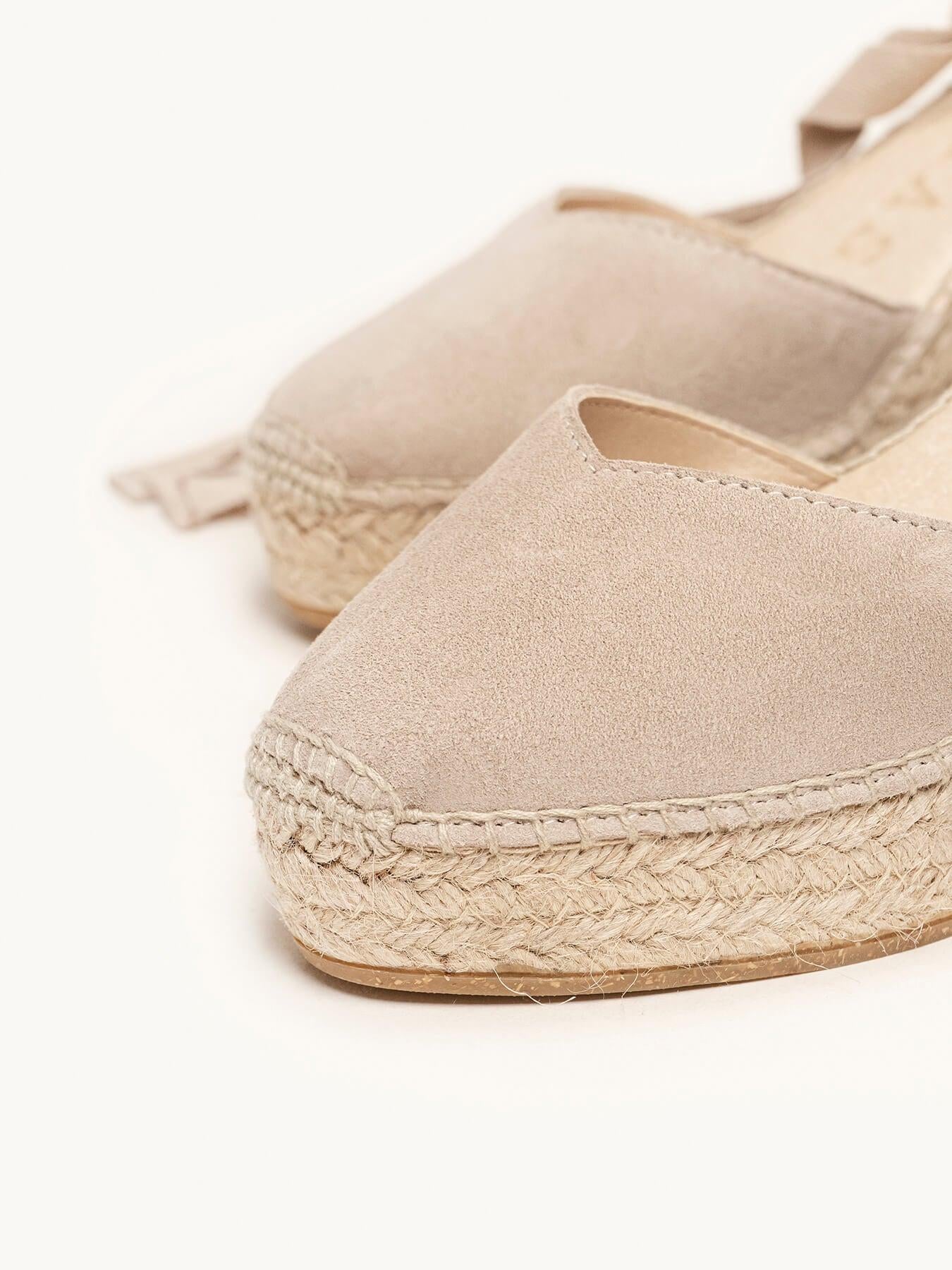 - Cuña de trenza de Yute natural con suela de goma reciclada mezclada con fibras naturales.