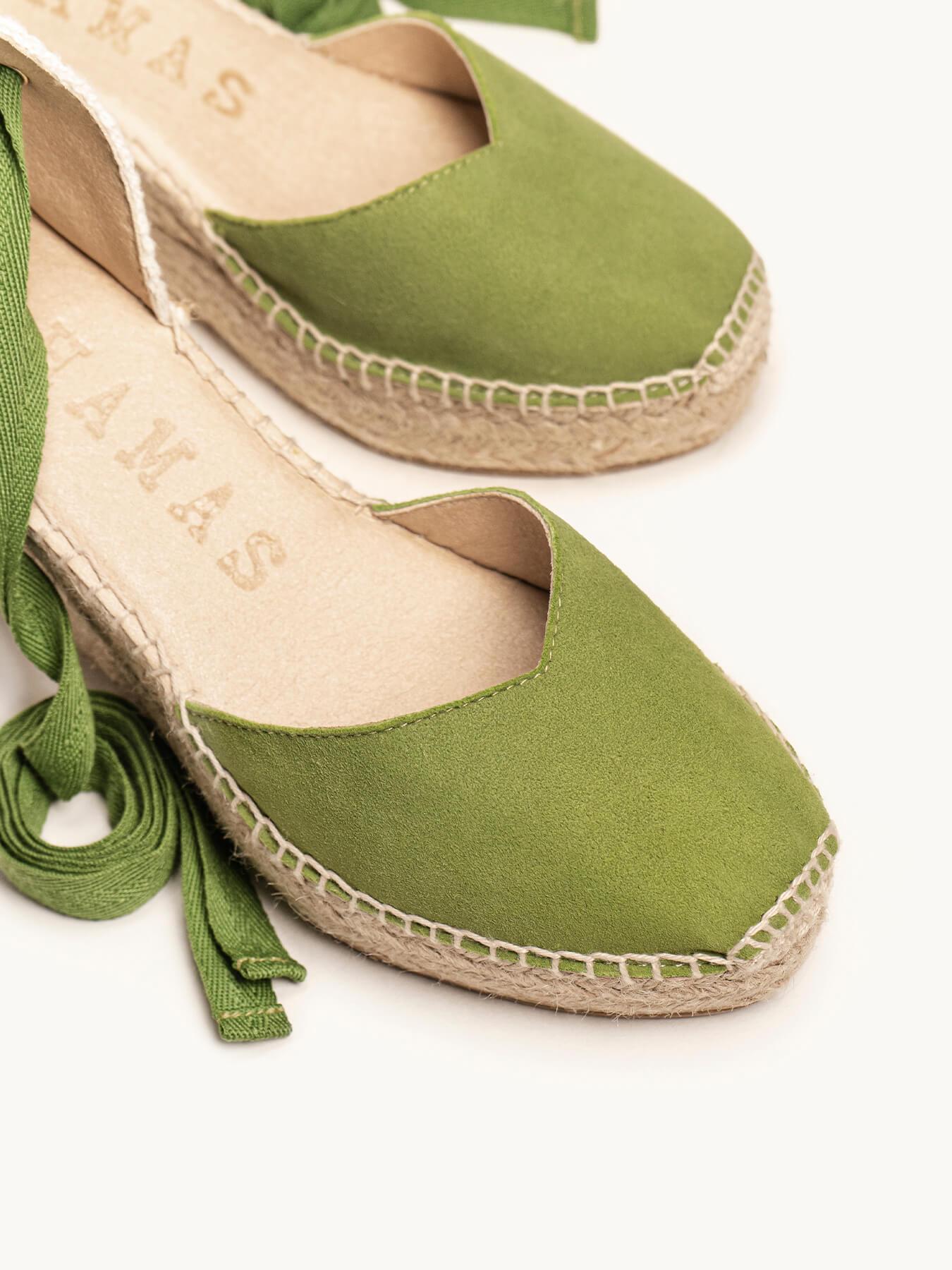 La alpargata de cuña media plataforma Romero, es nuestro modelo más icónico. Una alpargata valenciana de escote corazón con cintas que podrás llevar con tus looks especiales y también con los del día a día. Podrás darle un toque especial porque las cintas se pueden cambiar.