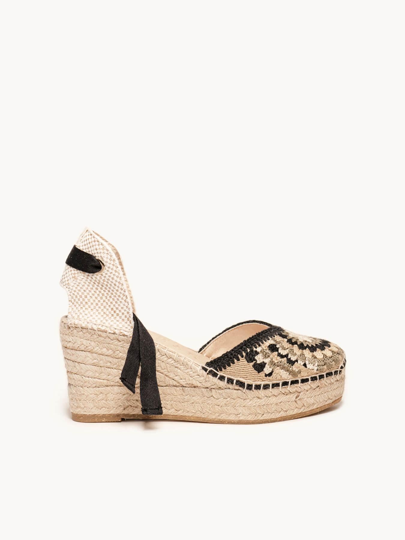 - Cuña de trenza de yute natural con suela de goma reciclada mezclada con fibras naturales