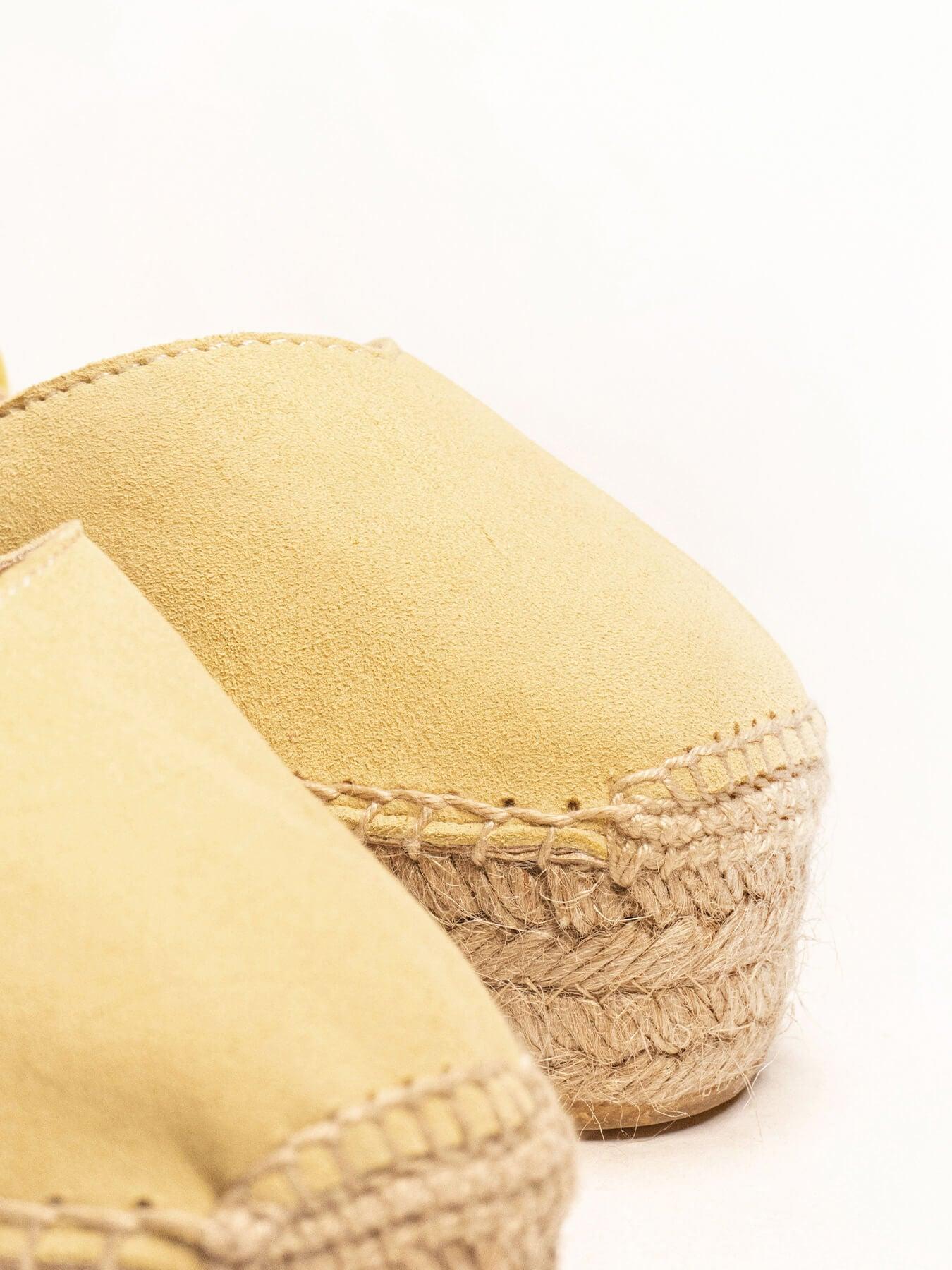 - Cuña de trenza de yute natural con suela de goma reciclada mezclada con fibras naturales