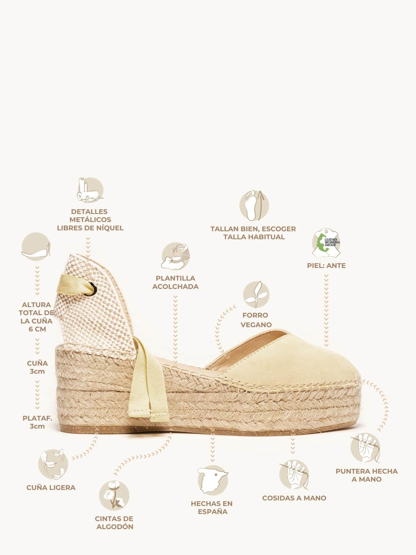 Alpargata Plataforma: 6 cm totales (3 de plataforma + 3 de cuña).