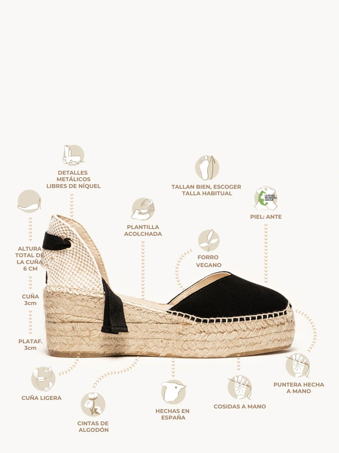 Alpargata Plataforma: 6 cm totales (3 de plataforma + 3 de cuña).